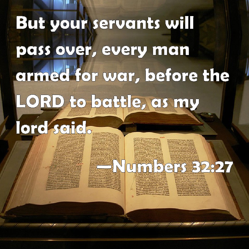 Choose a Background Numbers 32:27 But your servants will pass over, every man armed for war, before the LORD to battle, as my lord said. KJV: But thy servants will pass over, every man armed for war, before the LORD to battle, as my lord saith. DRB: And we thy servants all well appointed will march on to the war, as thou, my lord, speakest. DBT: but thy servants will pass over, every one armed for war, before Jehovah to battle, as my lord says. ERV: but thy servants will pass over, every man that is armed for war, before the LORD to battle, as my lord saith. WBT: But thy servants will pass over, every man armed for war, before the LORD to battle, as my lord saith. WEB: but your servants will pass over, every man who is armed for war, before Yahweh to battle, as my lord says." YLT: and thy servants pass over, every armed one of the host, before Jehovah, to battle, as my lord is saying.'Links Numbers 32:27 NIV • Numbers 32:27 NLT • Numbers 32:27 ESV • Numbers 32:27 NASB • Numbers 32:27 KJV • Numbers 32:27 Interlinear • Numbers 32:27 Commentaries • Numbers 32:27 Parallel Texts • Numbers 32:27 Bible Apps • Numbers 32:27 Parallel • Bible Hub |