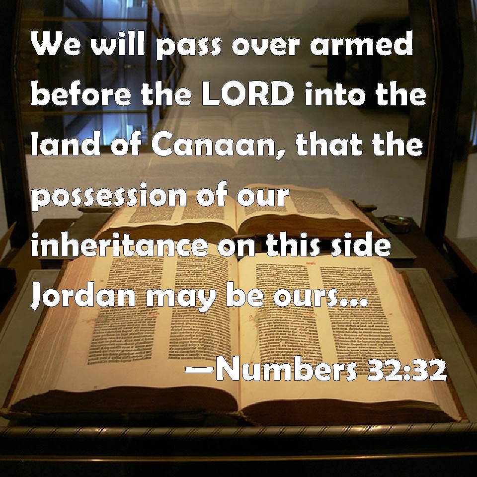 Numbers 32:32 We will pass over armed before the LORD into the land of Canaan, that the possession of our inheritance on this side Jordan may be ours.
