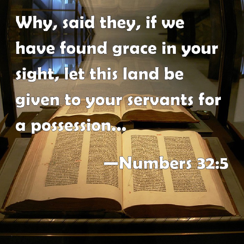 Choose a Background Numbers 32:5 Why, said they, if we have found grace in your sight, let this land be given to your servants for a possession, and bring us not over Jordan. KJV: Wherefore, said they, if we have found grace in thy sight, let this land be given unto thy servants for a possession, and bring us not over Jordan. DRB: And we pray thee, if we have found favour in thy sight, that thou give it to us thy servants in possession, and make us not pass over the Jordan. DBT: and they said, If we have found favour in thine eyes, let this land be given to thy servants for a possession: bring us not over the Jordan. ERV: And they said, If we have found grace in thy sight, let this land be given unto thy servants for a possession; bring us not over Jordan. WBT: Wherefore, said they, if we have found grace in thy sight, let this land be given to thy servants for a possession, and bring us not over Jordan. WEB: They said, "If we have found favor in your sight, let this land be given to your servants for a possession; don't bring us over the Jordan." YLT: And they say, 'If we have found grace in thine eyes, let this land be given to thy servants for a possession; cause us not to pass over the Jordan.'Links Numbers 32:5 NIV • Numbers 32:5 NLT • Numbers 32:5 ESV • Numbers 32:5 NASB • Numbers 32:5 KJV • Numbers 32:5 Interlinear • Numbers 32:5 Commentaries • Numbers 32:5 Parallel Texts • Numbers 32:5 Bible Apps • Numbers 32:5 Parallel • Bible Hub |