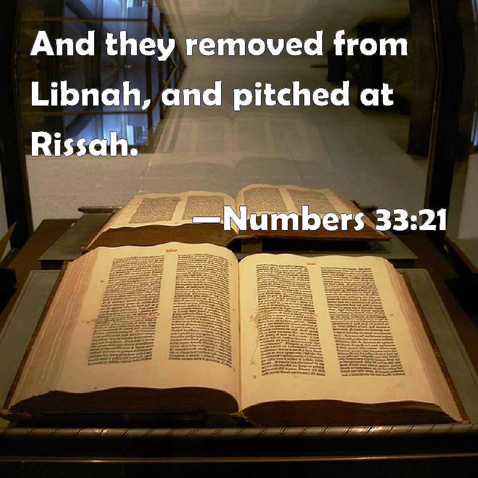 Numbers 33:21 And they removed from Libnah, and pitched at Rissah.
