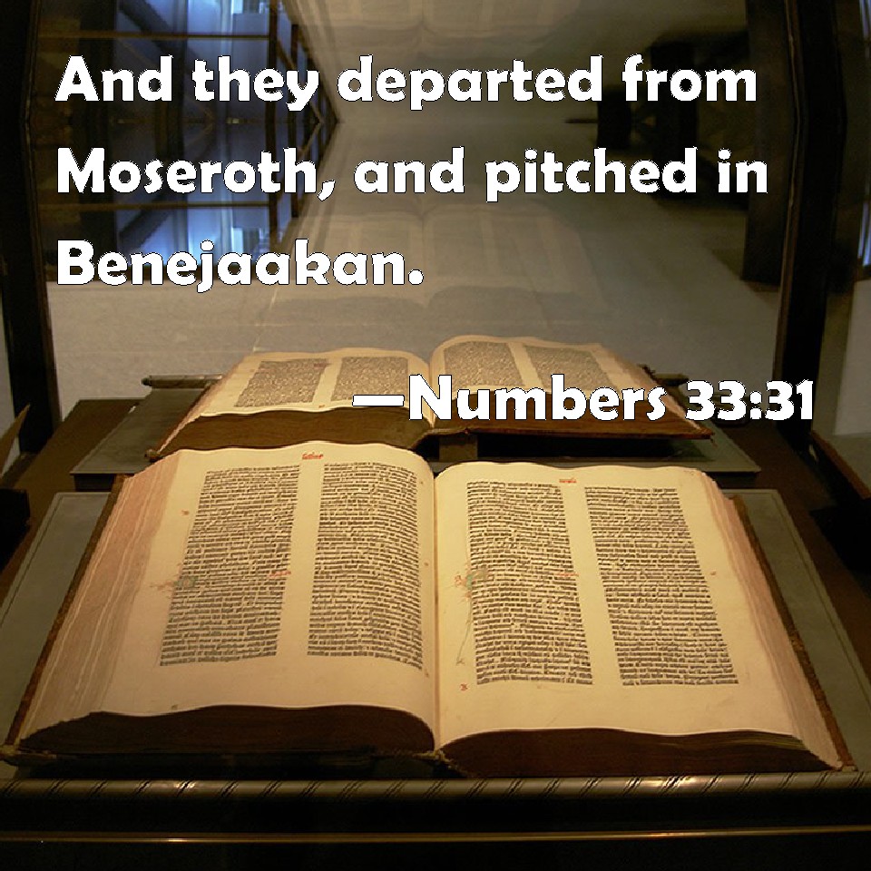 Numbers 33:31 And they departed from Moseroth, and pitched in Benejaakan.