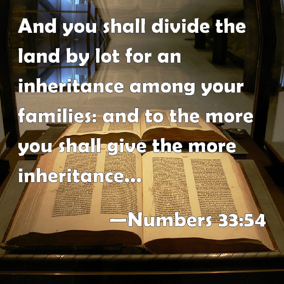 'And ye have inherited the land by lot, by your families; to the many ye increase their inheritance, and to the few ye diminish their inheritance; whither the lot goeth out to him, it is his; by the tribes of your fathers ye inherit.