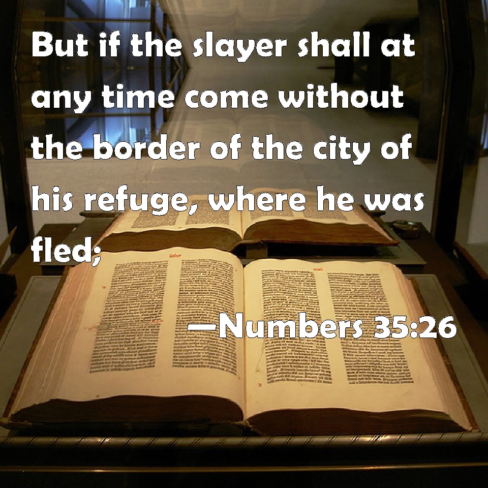 Numbers 35:26 But if the slayer shall at any time come without the border of the city of his refuge, where he was fled;