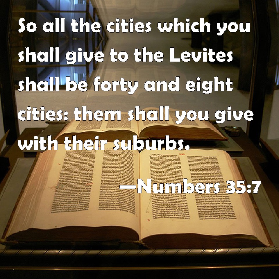 Numbers 35:7 So all the cities which you shall give to the Levites shall be forty and eight cities: them shall you give with their suburbs.