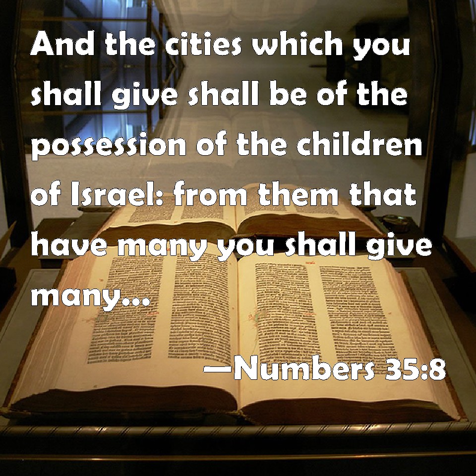 Numbers 35:8 And the cities which you shall give shall be of the possession of the children of Israel: from them that have many you shall give many; but from them that have few you shall give few: every one shall give of his cities to the Levites according to his inheritance which he inherits.