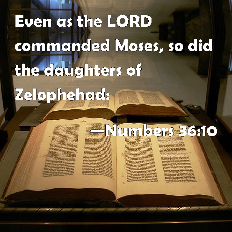 Numbers 36:10 Even as the LORD commanded Moses, so did the daughters of Zelophehad: