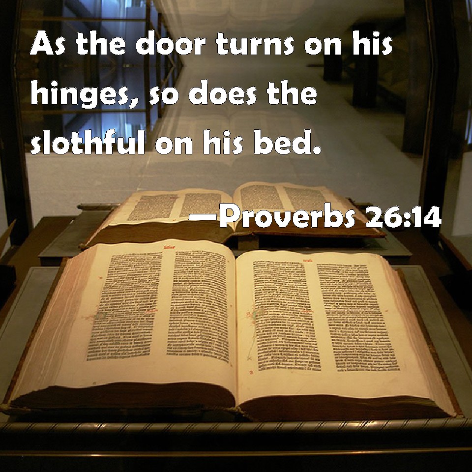 Proverbs 26:14 As the door turns on his hinges, so does the slothful on his bed.