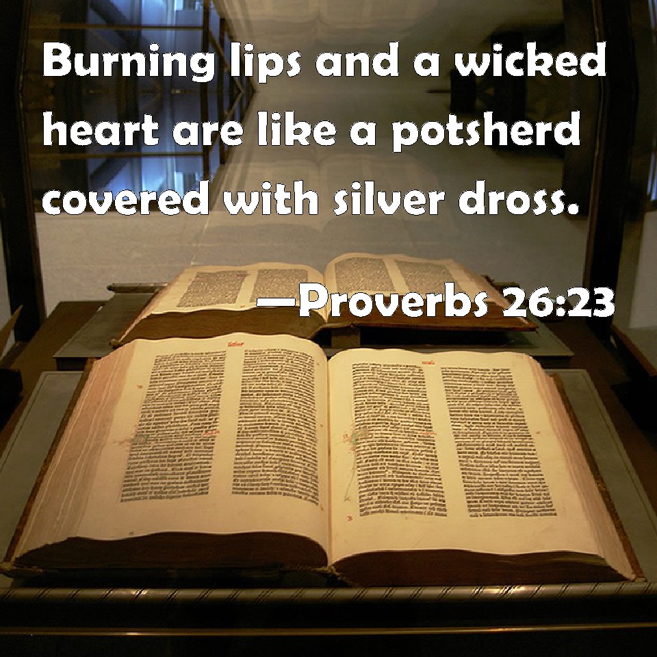 Proverbs 26:23 Burning lips and a wicked heart are like a potsherd covered with silver dross.