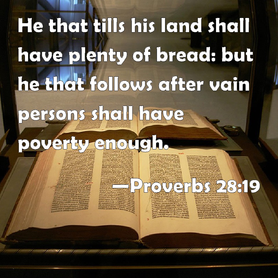 Proverbs 28:19 He that tills his land shall have plenty of bread: but he that follows after vain persons shall have poverty enough.