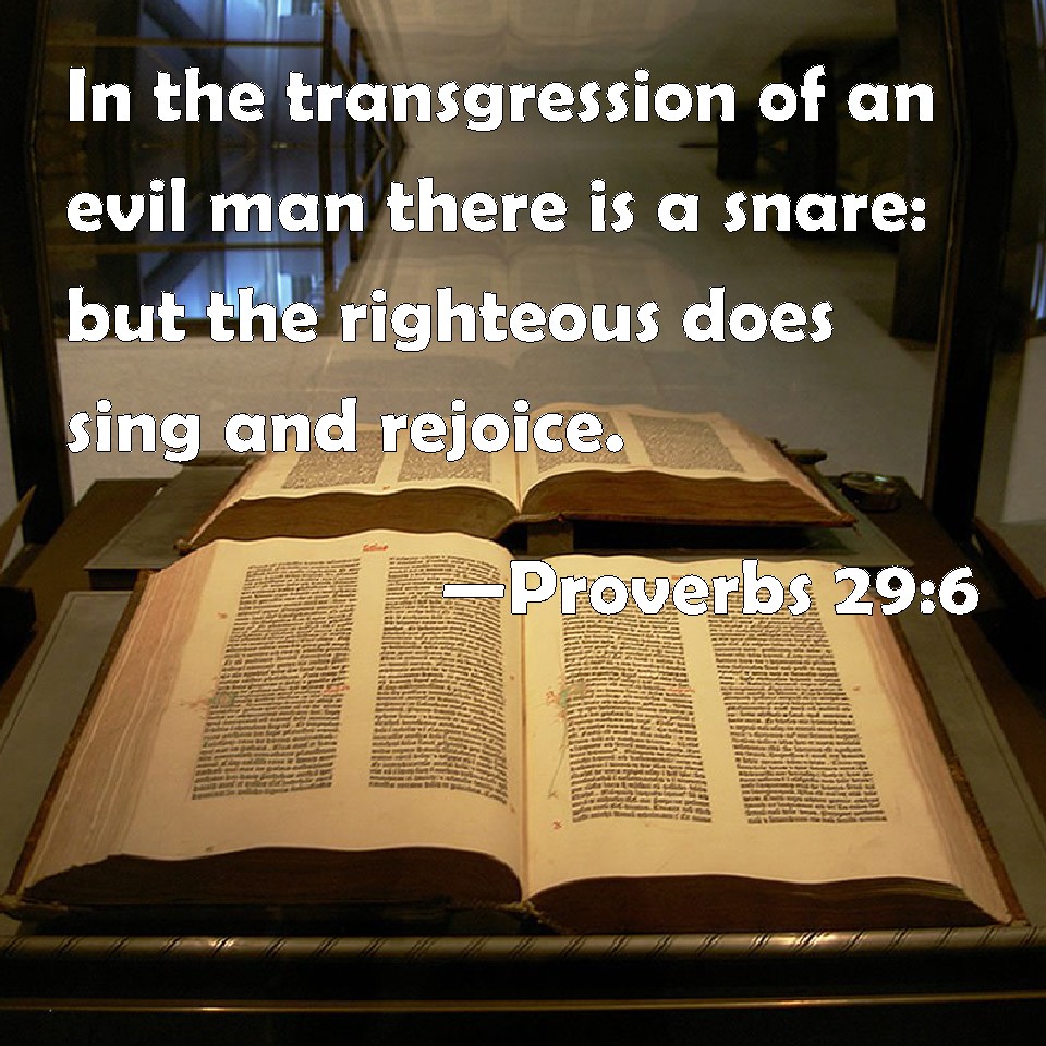 Proverbs 29:6 In the transgression of an evil man there is a snare: but the righteous does sing and rejoice.