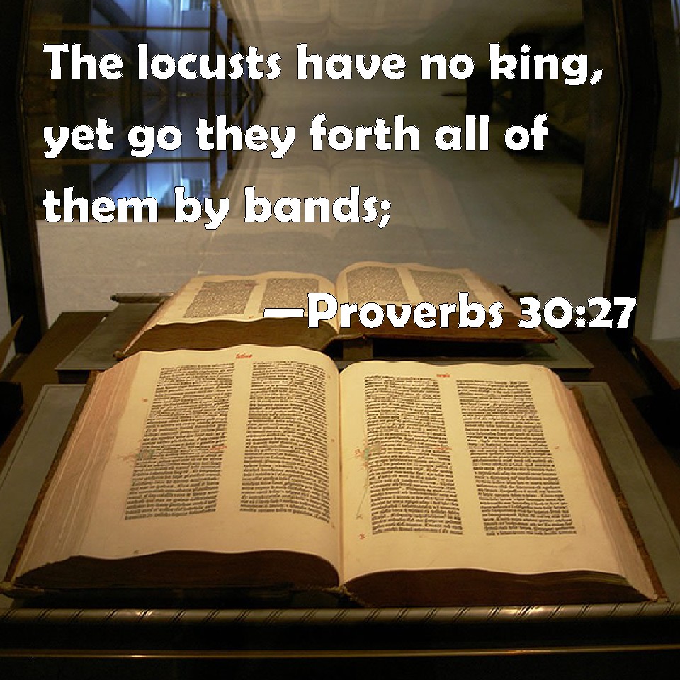 Proverbs 30:27 The locusts have no king, yet go they forth all of them by bands;