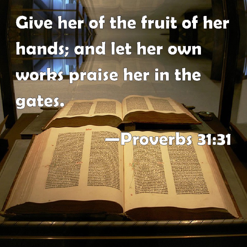 Proverbs 31:31 Give her of the fruit of her hands; and let her own works praise her in the gates.