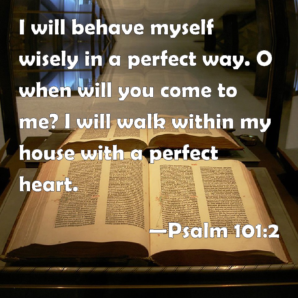 Psalm 101:2 I will behave myself wisely in a perfect way. O when will you come to me? I will walk within my house with a perfect heart.