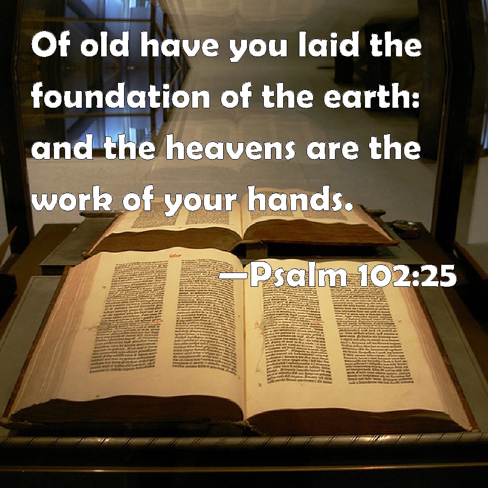 Psalm 102:25 Of old have you laid the foundation of the earth: and the heavens are the work of your hands.