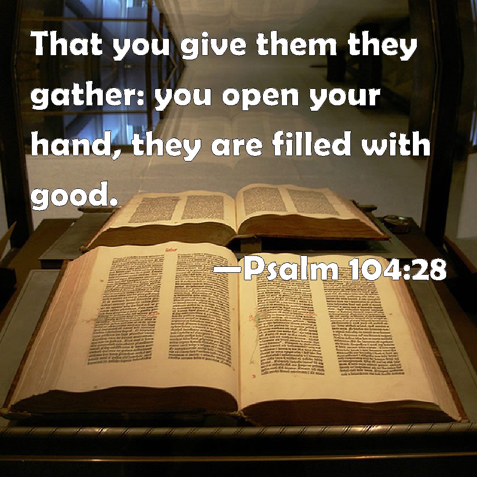 Psalm 104:28 That you give them they gather: you open your hand, they are filled with good.