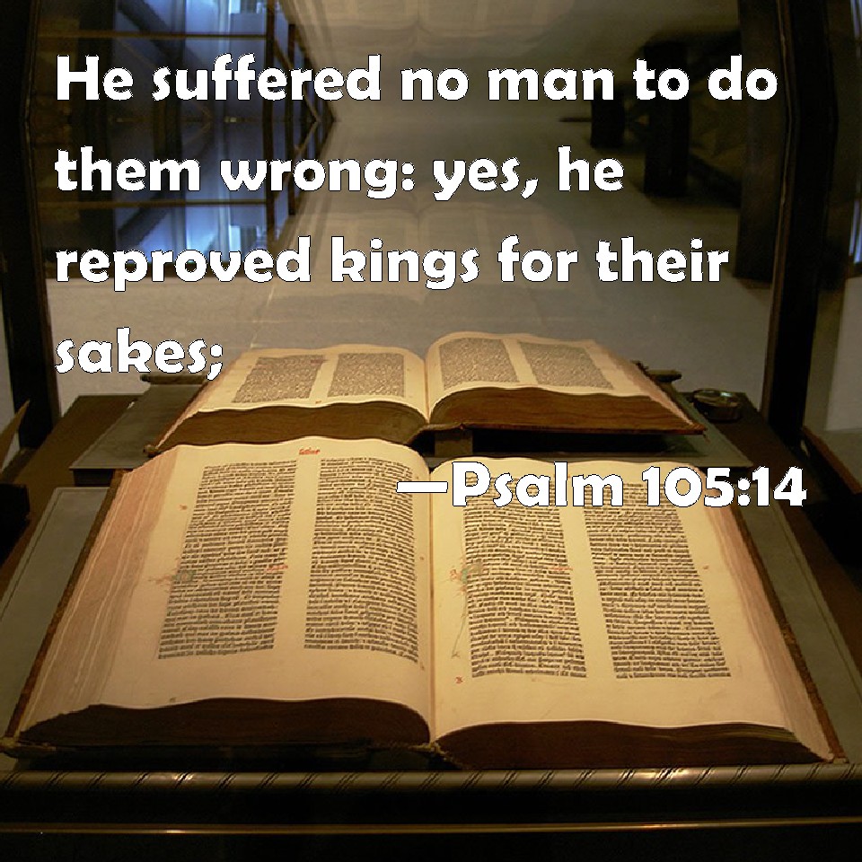 Psalm 105:14 He suffered no man to do them wrong: yes, he reproved kings for their sakes;