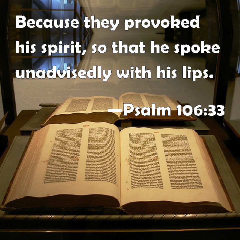 Psalm 106:33 Because they provoked his spirit, so that he spoke unadvisedly with his lips.