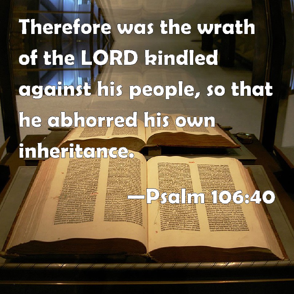 Psalm 106:40 Therefore was the wrath of the LORD kindled against his people, so that he abhorred his own inheritance.