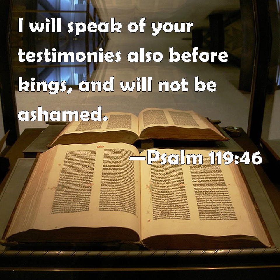 Psalm 119:46 I will speak of your testimonies also before kings, and will not be ashamed.