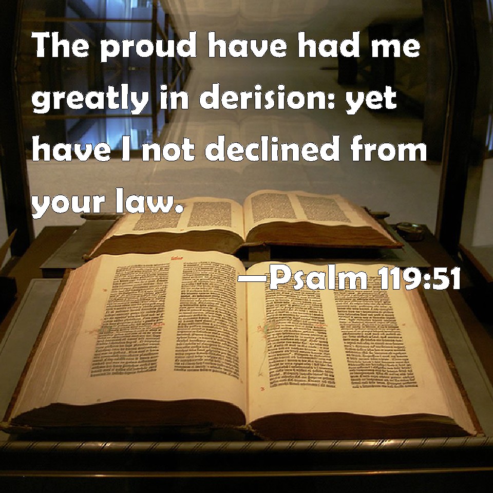 Psalm 119:51 The proud have had me greatly in derision: yet have I not declined from your law.