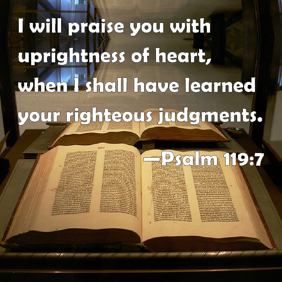 Psalm 119:7 I will praise you with uprightness of heart, when I shall have learned your righteous judgments.