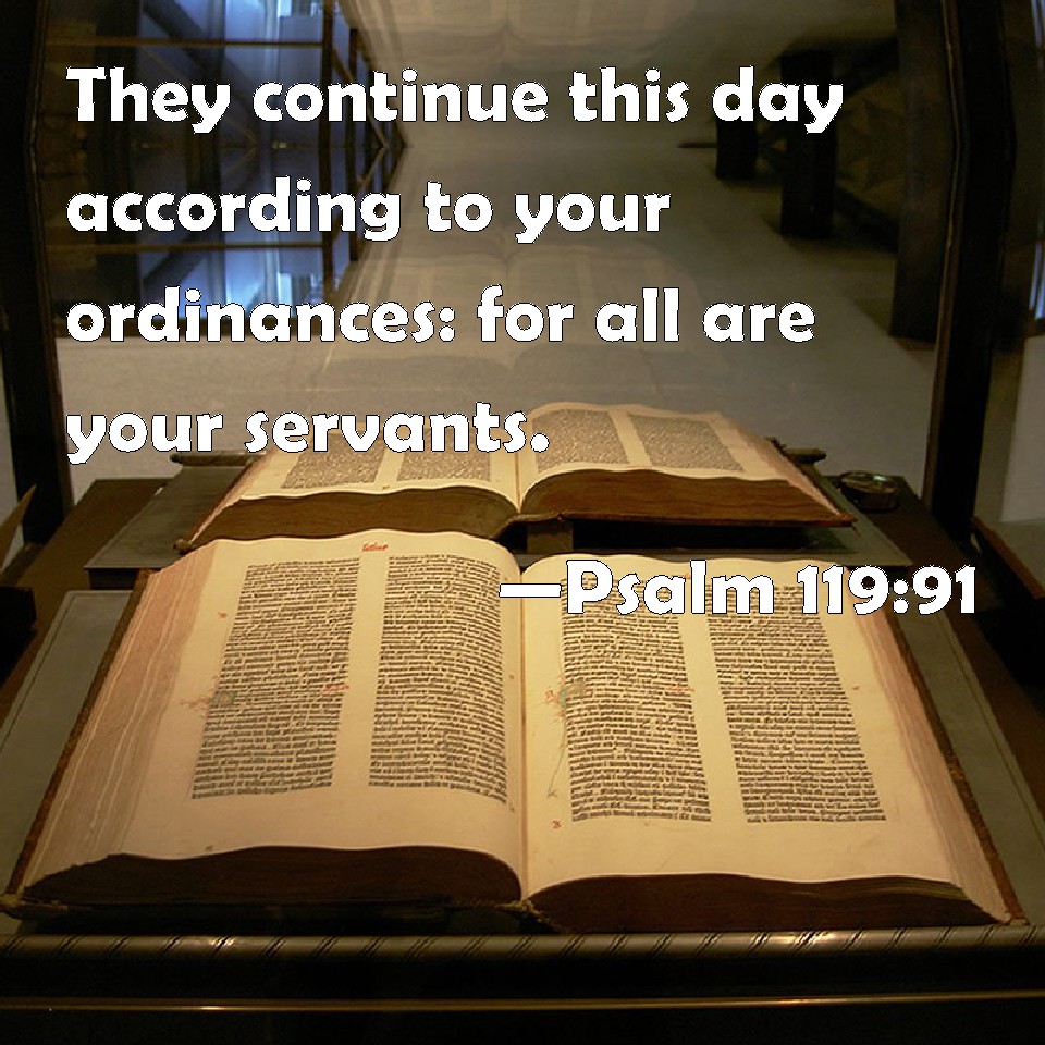 Psalm 119:91 They continue this day according to your ordinances: for all are your servants.