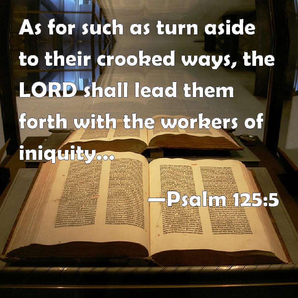 Psalm 125:5 As for such as turn aside to their crooked ways, the LORD shall lead them forth with the workers of iniquity: but peace shall be on Israel.
