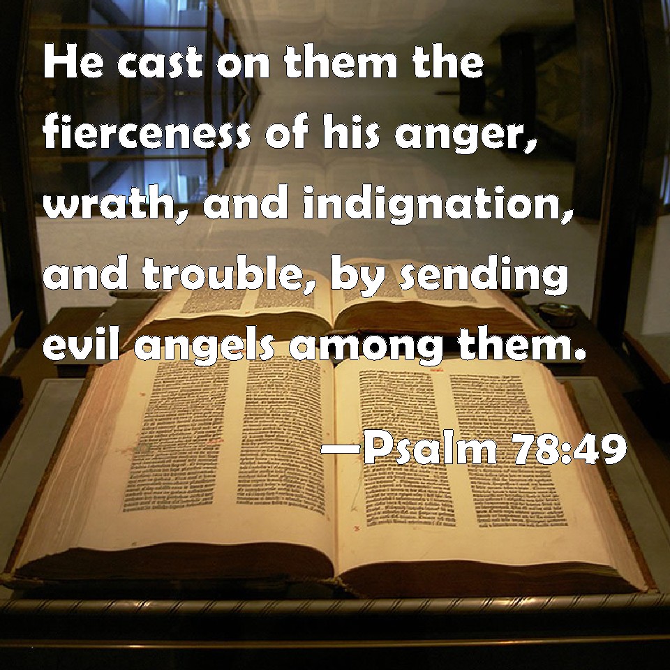 Choose a Background Psalm 78:49 He cast on them the fierceness of his anger, wrath, and indignation, and trouble, by sending evil angels among them. KJV: He cast upon them the fierceness of his anger, wrath, and indignation, and trouble, by sending evil angels among them. DRB: And he sent upon them the wrath of his indignation: indignation and wrath and trouble, which he sent by evil angels. DBT: He cast upon them the fierceness of his anger, wrath, and indignation, and distress, a mission of angels of woes. ERV: He cast upon them the fierceness of his anger, wrath, and indignation, and trouble, a band of angels of evil. WBT: He cast upon them the fierceness of his anger, wrath, and indignation, and trouble, by sending evil angels among them. WEB: He threw on them the fierceness of his anger, wrath, indignation, and trouble, and a band of angels of evil. YLT: He sendeth on them the fury of His anger, Wrath, and indignation, and distress — A discharge of evil messengers.Links Psalm 78:49 NIV • Psalm 78:49 NLT • Psalm 78:49 ESV • Psalm 78:49 NASB • Psalm 78:49 KJV • Psalm 78:49 Interlinear • Psalm 78:49 Commentaries • Psalm 78:49 Parallel Texts • Psalm 78:49 Bible Apps • Psalm 78:49 Parallel • Bible Hub |