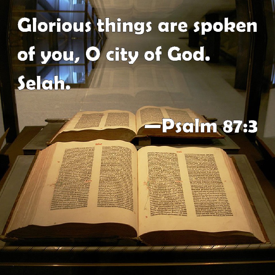 Psalm 87:3 Glorious things are spoken of you, O city of God. Selah.