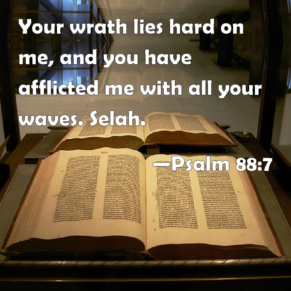 Psalm 88:7 Your wrath lies hard on me, and you have afflicted me with all your waves. Selah.