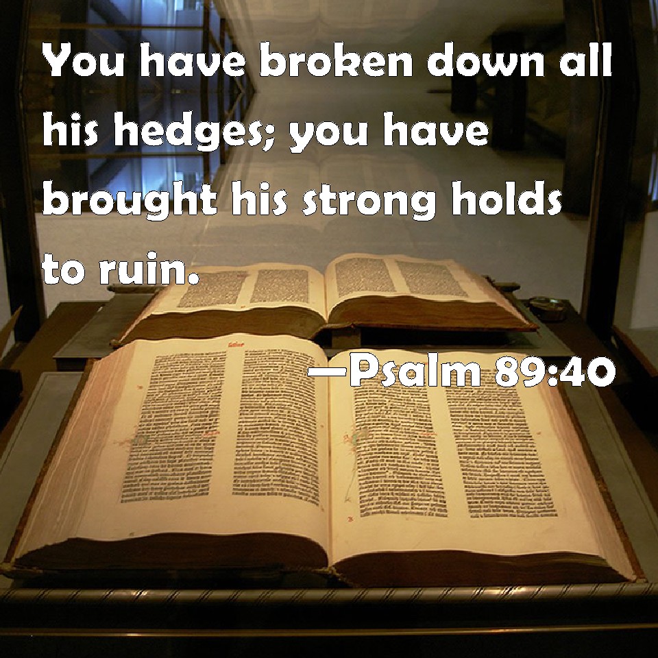 Psalm 89:40 You have broken down all his hedges; you have brought his strong holds to ruin.