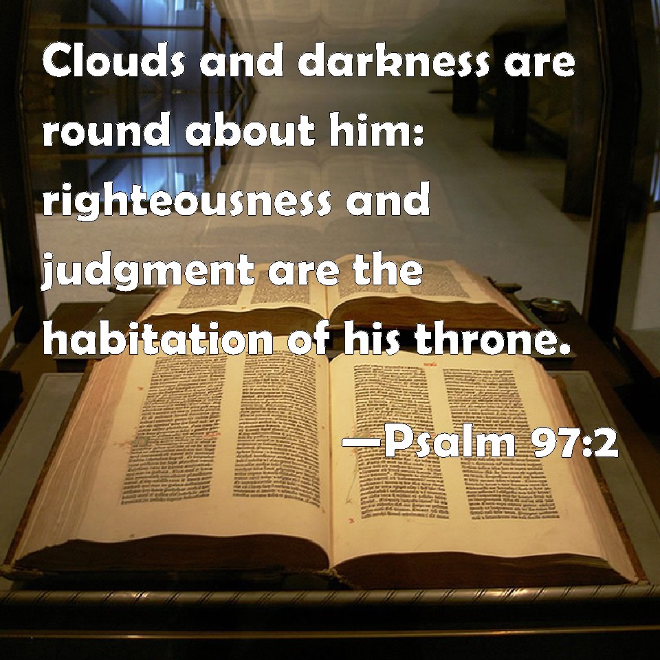 Psalm 97:2 Clouds and darkness are round about him: righteousness and judgment are the habitation of his throne.