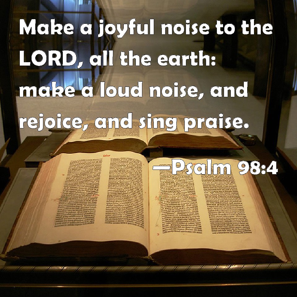 Choose a Background Psalm 98:4 Make a joyful noise to the LORD, all the earth: make a loud noise, and rejoice, and sing praise. KJV: Make a joyful noise unto the LORD, all the earth: make a loud noise, and rejoice, and sing praise. DRB: Sing joyfully to God, all the earth; make melody, rejoice and sing. DBT: Shout aloud unto Jehovah, all the earth; break forth and shout for joy, and sing psalms. ERV: Make a joyful noise unto the LORD, all the earth: break forth and sing for joy, yea, sing praises. WBT: Make a joyful noise to the LORD, all the earth: make a loud noise, and rejoice, and sing praise. WEB: Make a joyful noise to Yahweh, all the earth! Burst out and sing for joy, yes, sing praises! YLT: Shout to Jehovah, all the earth, Break forth, and cry aloud, and sing.Links Psalm 98:4 NIV • Psalm 98:4 NLT • Psalm 98:4 ESV • Psalm 98:4 NASB • Psalm 98:4 KJV • Psalm 98:4 Interlinear • Psalm 98:4 Commentaries • Psalm 98:4 Parallel Texts • Psalm 98:4 Bible Apps • Psalm 98:4 Parallel • Bible Hub |