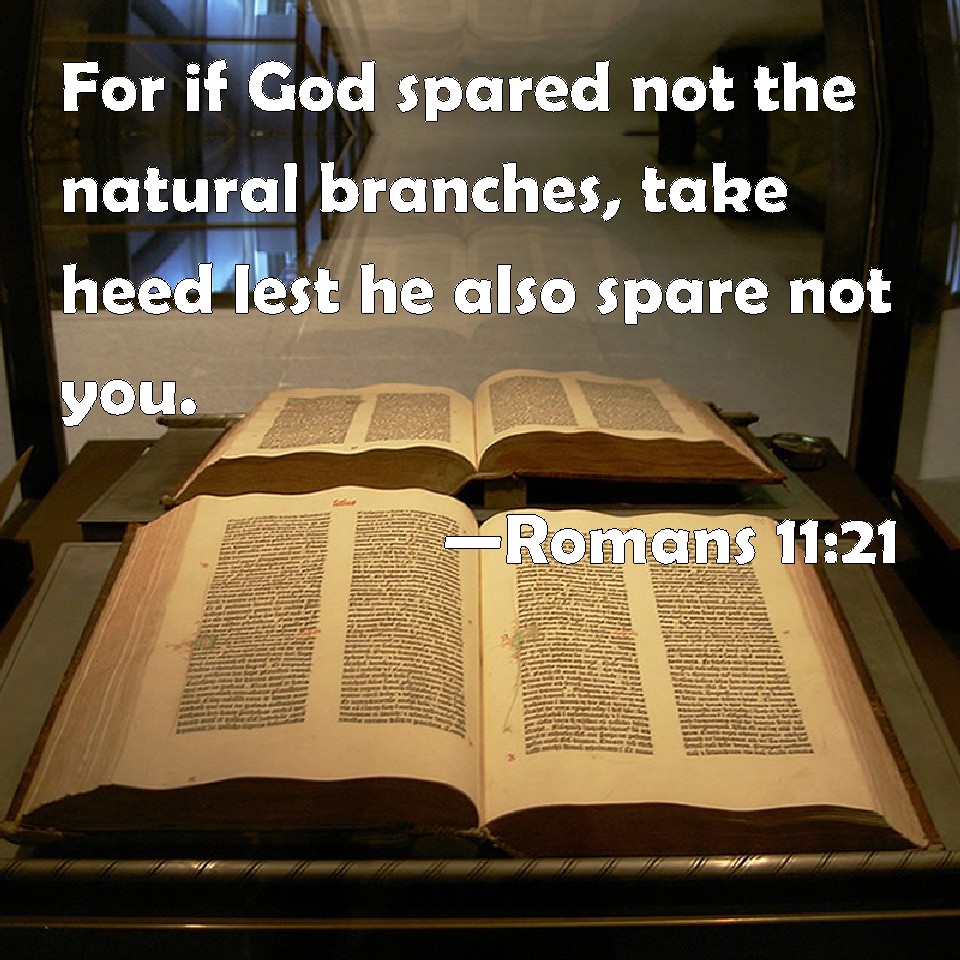 Romans 11:21 For if God spared not the natural branches, take heed lest he also spare not you.