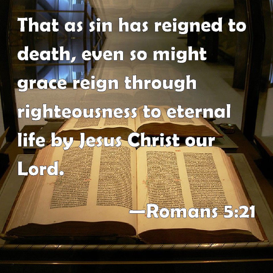 Choose a Background Romans 5:21 That as sin has reigned to death, even so might grace reign through righteousness to eternal life by Jesus Christ our Lord. KJV: That as sin hath reigned unto death, even so might grace reign through righteousness unto eternal life by Jesus Christ our Lord. DRB: That as sin hath reigned to death; so also grace might reign by justice unto life everlasting, through Jesus Christ our Lord. DBT: in order that, even as sin has reigned in the power of death, so also grace might reign through righteousness to eternal life through Jesus Christ our Lord. ERV: that, as sin reigned in death, even so might grace reign through righteousness unto eternal life through Jesus Christ our Lord. WBT: That as sin hath reigned to death, even so might grace reign through righteousness to eternal life, by Jesus Christ our Lord. WEB: that as sin reigned in death, even so grace might reign through righteousness to eternal life through Jesus Christ our Lord. YLT: that even as the sin did reign in the death, so also the grace may reign, through righteousness, to life age-during, through Jesus Christ our Lord.Links Romans 5:21 NIV • Romans 5:21 NLT • Romans 5:21 ESV • Romans 5:21 NASB • Romans 5:21 KJV • Romans 5:21 Interlinear • Romans 5:21 Commentaries • Romans 5:21 Parallel Texts • Romans 5:21 Bible Apps • Romans 5:21 Parallel • Bible Hub |