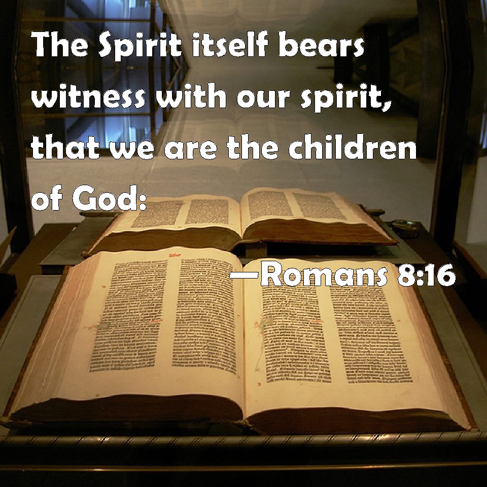 Romans 8:16 The Spirit itself bears witness with our spirit, that we are the children of God: