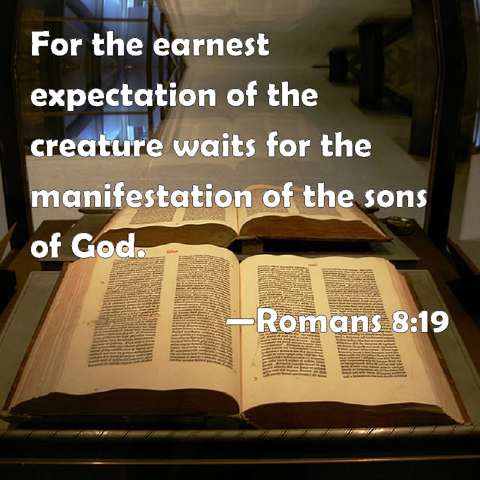 Romans 8:19 For the earnest expectation of the creature waits for the manifestation of the sons of God.