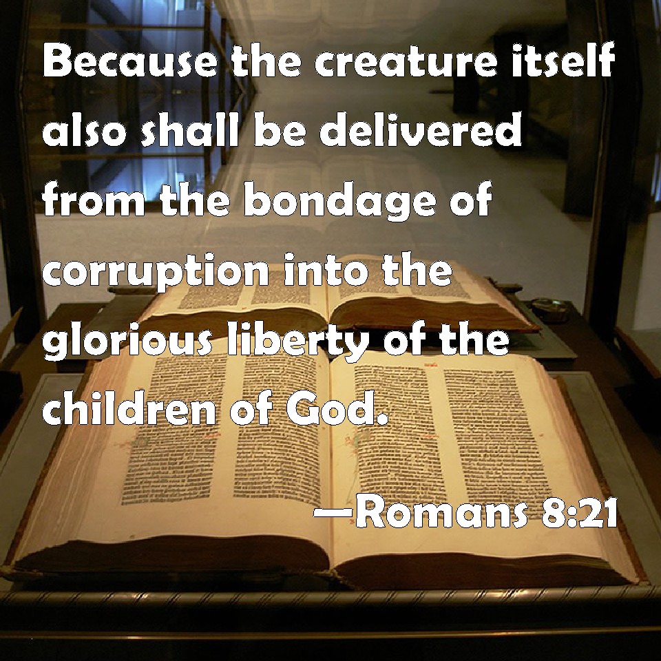 Romans 8:21 Because the creature itself also shall be delivered from the bondage of corruption into the glorious liberty of the children of God.