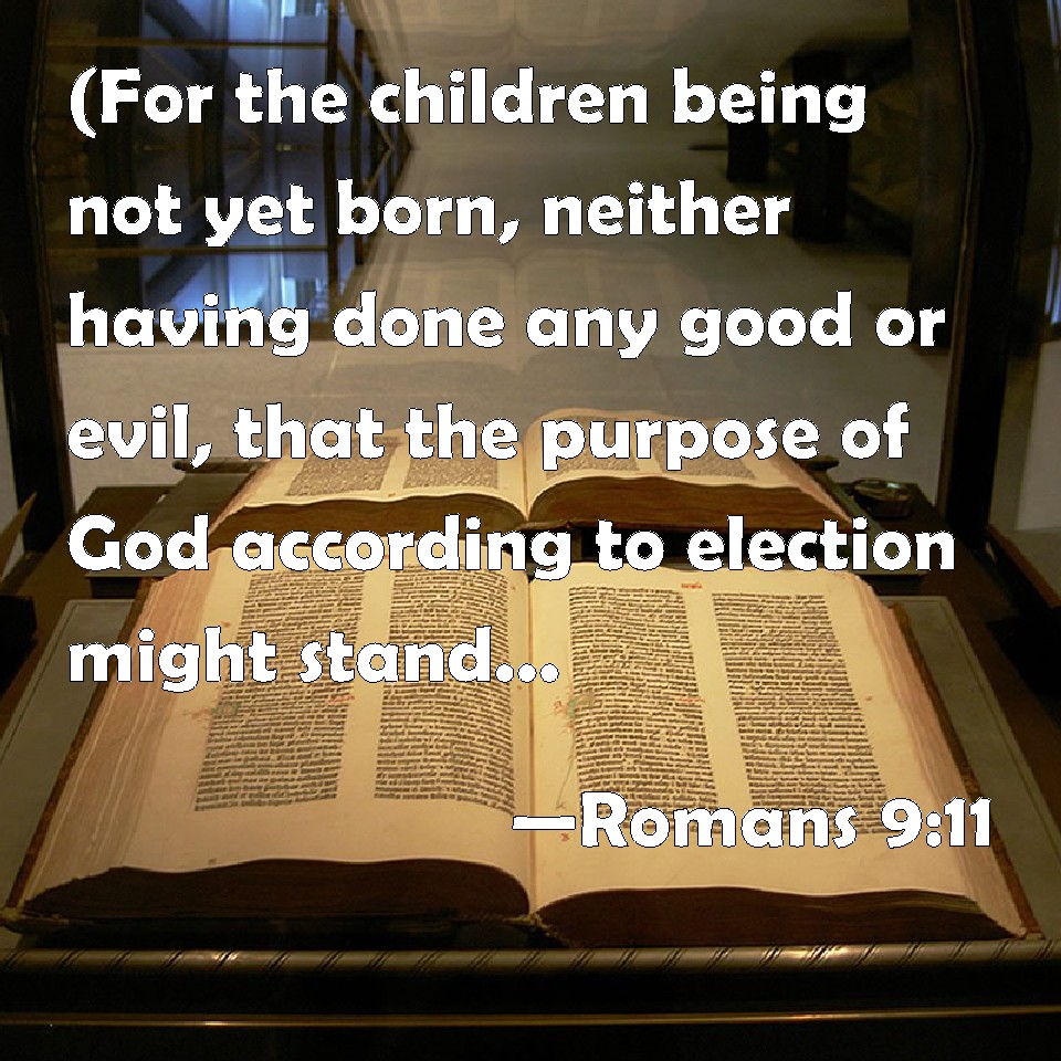 Choose a Background Romans 9:11 (For the children being not yet born, neither having done any good or evil, that the purpose of God according to election might stand, not of works, but of him that calls;) KJV: (For the children being not yet born, neither having done any good or evil, that the purpose of God according to election might stand, not of works, but of him that calleth;) DRB: For when the children were not yet born, nor had done any good or evil (that the purpose of God, according to election, might stand,) DBT: the children indeed being not yet born, or having done anything good or worthless (that the purpose of God according to election might abide, not of works, but of him that calls), ERV: for the children being not yet born, neither having done anything good or bad, that the purpose of God according to election might stand, not of works, but of him that calleth, WBT: (For the children being not yet born, neither having done any good or evil, that the purpose of God, according to election might stand, not of works, but of him that calleth) WEB: For being not yet born, neither having done anything good or bad, that the purpose of God according to election might stand, not of works, but of him who calls, YLT: (for they being not yet born, neither having done anything good or evil, that the purpose of God, according to choice, might remain; not of works, but of Him who is calling,) it was said to her — Links Romans 9:11 NIV • Romans 9:11 NLT • Romans 9:11 ESV • Romans 9:11 NASB • Romans 9:11 KJV • Romans 9:11 Interlinear • Romans 9:11 Commentaries • Romans 9:11 Parallel Texts • Romans 9:11 Bible Apps • Romans 9:11 Parallel • Bible Hub |