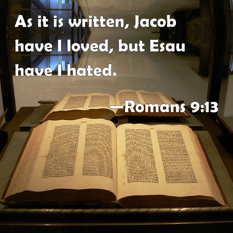 Choose a Background Romans 9:13 As it is written, Jacob have I loved, but Esau have I hated. KJV: As it is written, Jacob have I loved, but Esau have I hated. DRB: As it is written: Jacob I have loved, but Esau I have hated. DBT: according as it is written, I have loved Jacob, and I have hated Esau. ERV: Even as it is written, Jacob I loved, but Esau I hated. WBT: As it is written, Jacob have I loved, but Esau have I hated. WEB: Even as it is written, "Jacob I loved, but Esau I hated." YLT: according as it hath been written, 'Jacob I did love, and Esau I did hate.'Links Romans 9:13 NIV • Romans 9:13 NLT • Romans 9:13 ESV • Romans 9:13 NASB • Romans 9:13 KJV • Romans 9:13 Interlinear • Romans 9:13 Commentaries • Romans 9:13 Parallel Texts • Romans 9:13 Bible Apps • Romans 9:13 Parallel • Bible Hub |