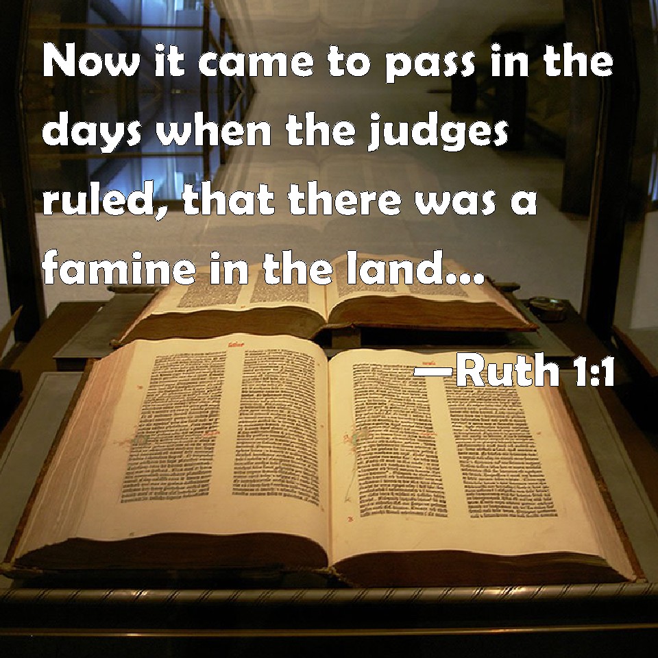 Choose a Background Ruth 1:1 Now it came to pass in the days when the judges ruled, that there was a famine in the land. And a certain man of Bethlehemjudah went to sojourn in the country of Moab, he, and his wife, and his two sons. KJV: Now it came to pass in the days when the judges ruled, that there was a famine in the land. And a certain man of Bethlehemjudah went to sojourn in the country of Moab, he, and his wife, and his two sons. DRB: In the days of one of the judges, when the judges ruled, there came a famine in the land. And a certain man of Bethlehem Juda, went to sojourn in the land of Moab with his wife and his two sons. DBT: And it came to pass in the days when the judges ruled, that there was a famine in the land. And a certain man went from Bethlehem-Judah, to sojourn in the country of Moab, he, and his wife, and his two sons. ERV: And it came to pass in the days when the judges judged, that there was a famine in the land. And a certain man of Beth-lehem-judah went to sojourn in the country of Moab, he, and his wife, and his two sons. WBT: Now it came to pass in the days when the judges ruled, that there was a famine in the land. And a certain man of Beth-lehem-judah went to dwell in the country of Moab, he, and his wife, and his two sons. WEB: It happened in the days when the judges judged, that there was a famine in the land. A certain man of Bethlehem Judah went to live in the country of Moab, he, and his wife, and his two sons. YLT: And it cometh to pass, in the days of the judging of the judges, that there is a famine in the land, and there goeth a man from Beth-Lehem-Judah to sojourn in the fields of Moab, he, and his wife, and his two sons.Links Ruth 1:1 NIV • Ruth 1:1 NLT • Ruth 1:1 ESV • Ruth 1:1 NASB • Ruth 1:1 KJV • Ruth 1:1 Interlinear • Ruth 1:1 Commentaries • Ruth 1:1 Parallel Texts • Ruth 1:1 Bible Apps • Ruth 1:1 Parallel • Bible Hub |