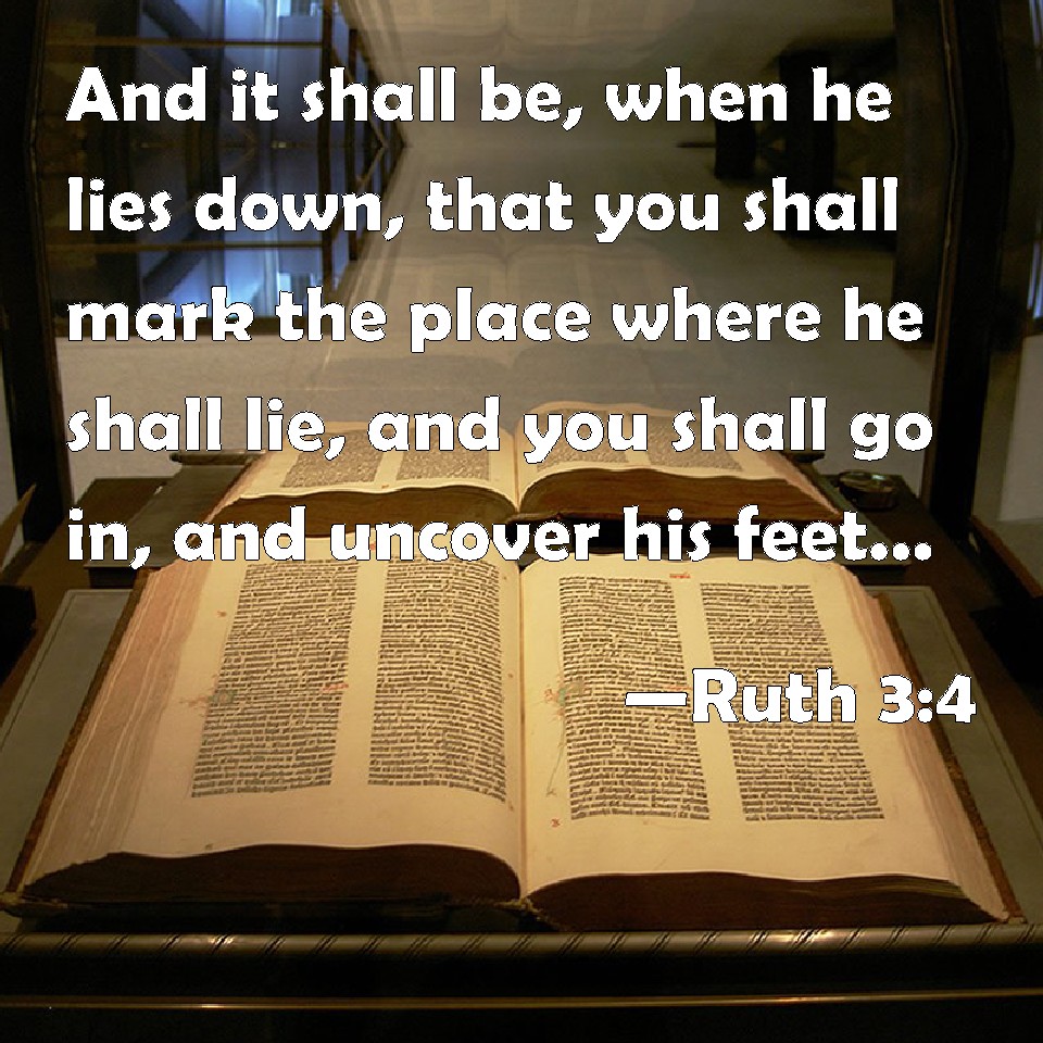 Choose a Background Ruth 3:4 And it shall be, when he lies down, that you shall mark the place where he shall lie, and you shall go in, and uncover his feet, and lay you down; and he will tell you what you shall do. KJV: And it shall be, when he lieth down, that thou shalt mark the place where he shall lie, and thou shalt go in, and uncover his feet, and lay thee down; and he will tell thee what thou shalt do. DRB: And when he shall go to sleep, mark the place wherein he sleepeth: and thou shalt go in, and lift up the clothes wherewith he is covered towards his feet, and shalt lay thyself down there: and he will tell thee what thou must do. DBT: And it shall be, when he lies down, that thou shalt mark the place where he shall have lain down, and thou shalt go in, and uncover his feet, and lay thyself down; and he will shew thee what thou shalt do. ERV: And it shall be, when he lieth down, that thou shalt mark the place where he shall lie, and thou shalt go in, and uncover his feet, and lay thee down; and he will tell thee what thou shalt do. WBT: And it shall be when he lieth down, that thou shalt mark the place where he shall lie, and thou shalt go in, and uncover his feet, and lay thee down; and he will tell thee what thou shalt do. WEB: It shall be, when he lies down, that you shall mark the place where he shall lie, and you shall go in, and uncover his feet, and lay down; then he will tell you what you shall do." YLT: and it cometh to pass when he lieth down, that thou hast known the place where he lieth down, and hast gone in, and uncovered his feet, and lain down, — and he doth declare to thee that which thou dost do.'Links Ruth 3:4 NIV • Ruth 3:4 NLT • Ruth 3:4 ESV • Ruth 3:4 NASB • Ruth 3:4 KJV • Ruth 3:4 Interlinear • Ruth 3:4 Commentaries • Ruth 3:4 Parallel Texts • Ruth 3:4 Bible Apps • Ruth 3:4 Parallel • Bible Hub |