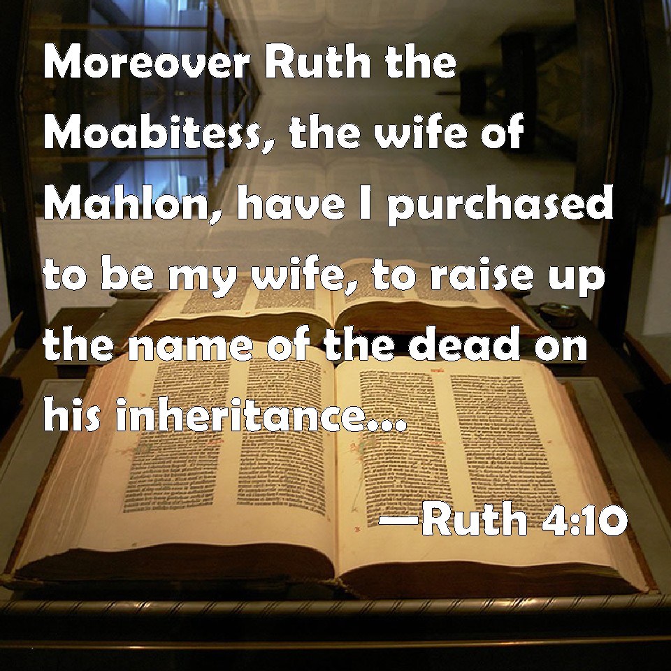 Choose a Background Ruth 4:10 Moreover Ruth the Moabitess, the wife of Mahlon, have I purchased to be my wife, to raise up the name of the dead on his inheritance, that the name of the dead be not cut off from among his brothers, and from the gate of his place: you are witnesses this day. KJV: Moreover Ruth the Moabitess, the wife of Mahlon, have I purchased to be my wife, to raise up the name of the dead upon his inheritance, that the name of the dead be not cut off from among his brethren, and from the gate of his place: ye are witnesses this day. DRB: And have taken to wife Ruth the Moabitess, the wife of Mahalon, to raise up the name of the deceased in his inheritance lest his name be cut off, from among his family and his brethren and his people. You, I say, are witnesses of this thing. DBT: moreover Ruth the Moabitess, the wife of Mahlon, have I purchased to be my wife, to raise up the name of the dead upon his inheritance, that the name of the dead be not cut off from among his brethren and from the gate of his place: ye are witnesses this day. ERV: Moreover Ruth the Moabitess, the wife of Mahlon, have I purchased to be my wife, to raise up the name of the dead upon his inheritance, that the name of the dead be not cut off from among his brethren, and from the gate of his place: ye are witnesses this day. WBT: Moreover, Ruth the Moabitess, the wife of Mahlon, have I purchased to be my wife, to raise up the name of the dead upon his inheritance, that the name of the dead be not cut off from among his brethren, and from the gate of his place: ye are witnesses this day. WEB: Moreover Ruth the Moabitess, the wife of Mahlon, I have purchased to be my wife, to raise up the name of the dead on his inheritance, that the name of the dead not be cut off from among his brothers, and from the gate of his place. You are witnesses this day." YLT: and also Ruth the Moabitess, wife of Mahlon, I have bought to myself for a wife, to raise up the name of the dead over his inheritance; and the name of the dead is not cut off from among his brethren, and from the gate of his place; witnesses ye are to-day.'Links Ruth 4:10 NIV • Ruth 4:10 NLT • Ruth 4:10 ESV • Ruth 4:10 NASB • Ruth 4:10 KJV • Ruth 4:10 Interlinear • Ruth 4:10 Commentaries • Ruth 4:10 Parallel Texts • Ruth 4:10 Bible Apps • Ruth 4:10 Parallel • Bible Hub |