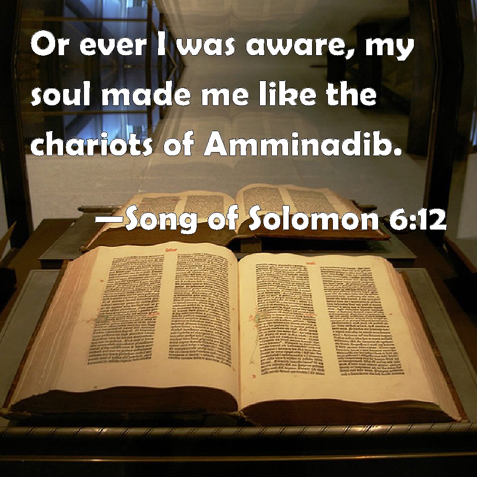 Song of Solomon 6:12 Or ever I was aware, my soul made me like the chariots of Amminadib.