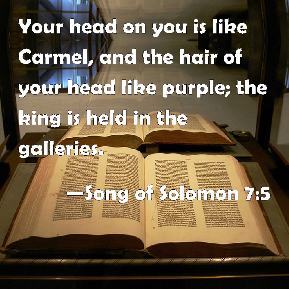 Song of Solomon 7:5 Your head on you is like Carmel, and the hair of your head like purple; the king is held in the galleries.