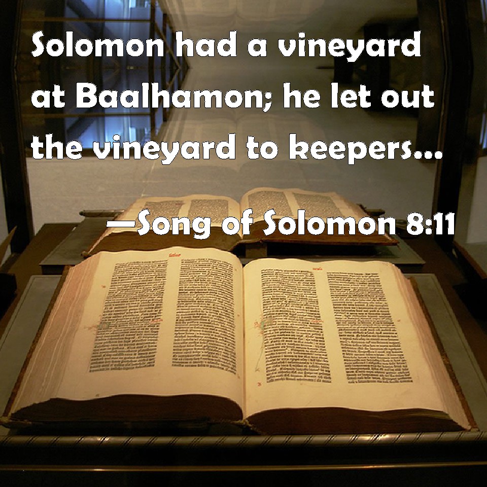 Song of Solomon 8:11 Solomon had a vineyard at Baalhamon; he let out the vineyard to keepers; every one for the fruit thereof was to bring a thousand pieces of silver.